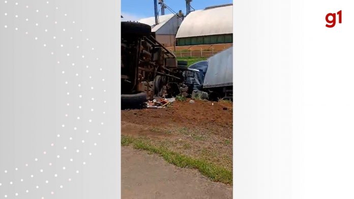 Nas imagens é possível ver os dois caminhões na margem da BR-153. Devido ao impacto, um deles chegou a tombar. No local, uma mulher foi retirada debaixo do veículo tombado por pessoas que passavam pela região.