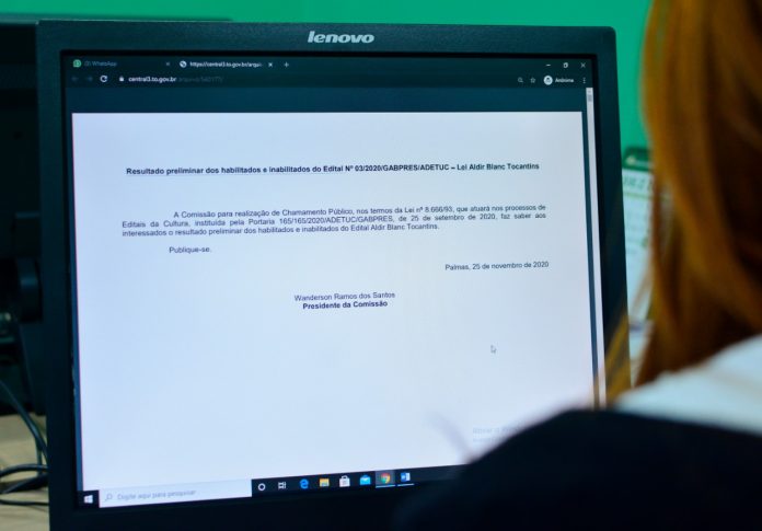 Aos inabilitados, o prazo para interposição de recurso ocorre entre os dias 26 e 27 de novembro, pelo e-mail aldirblancto@cultura.to.gov.br.