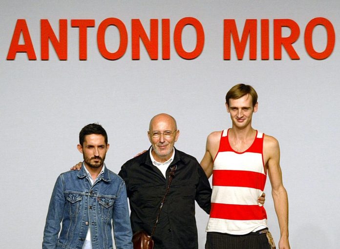 Respeitado estilista catalão participou de semanas de moda em Paris, Nova York e Tóquio, além de ter criado uniformes para as cerimônias dos Jogos Olímpicos de Barcelona em 1992. Estilista catalão Antonio Miro (centro) posa ao lado de modelos em desfile de 2003