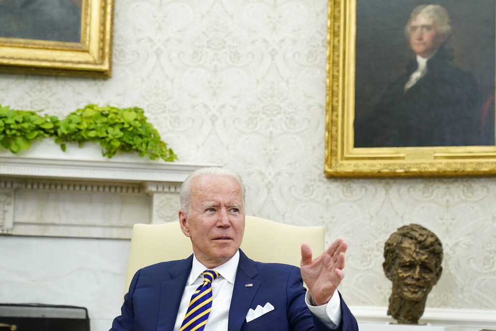 Agência estatal síria e milícias iraquianas disseram que ofensiva deixou mortos. Ação aumenta tensões no Oriente Médio. Presidente dos EUA, Joe Biden, durante encontro na Casa Branca na segunda-feira (28)