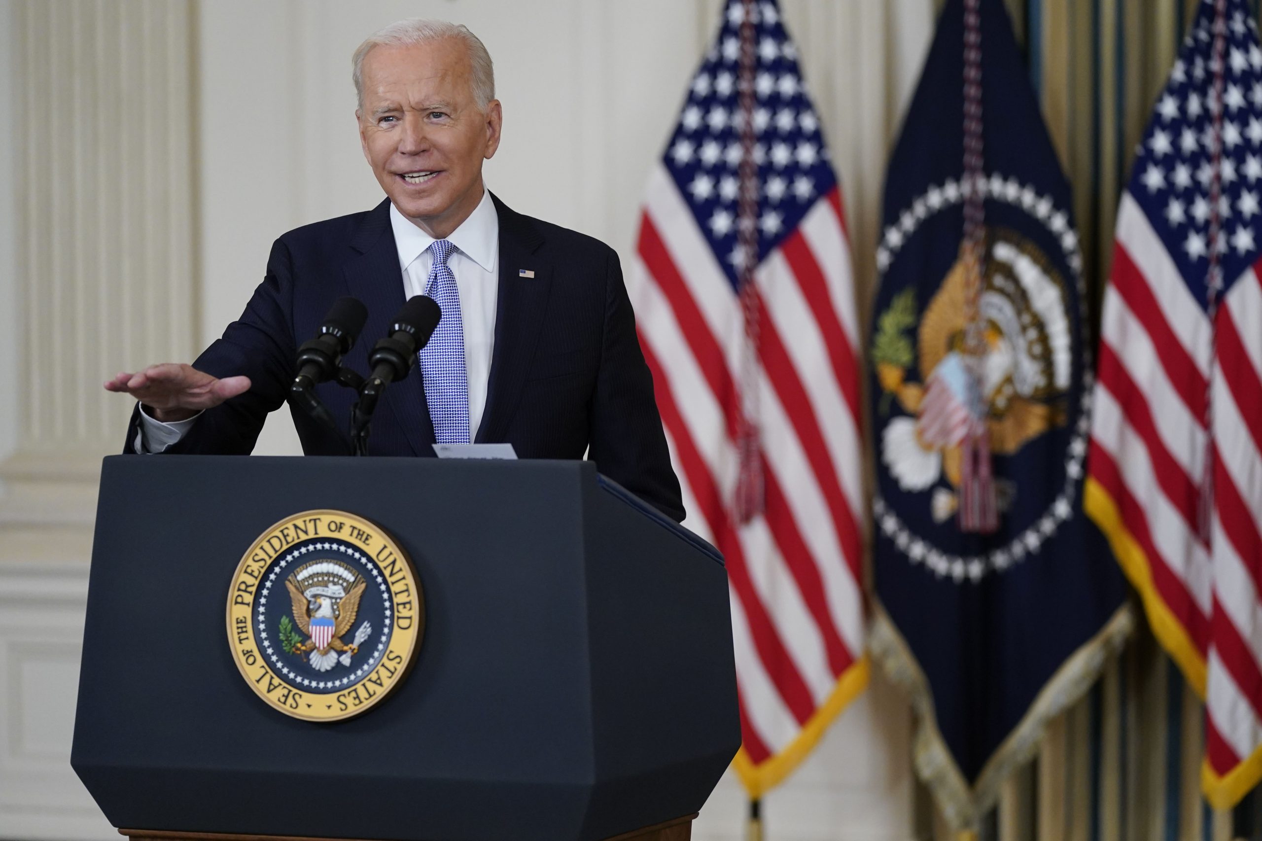 Armas hipersônicas viajam na atmosfera com velocidade mais de cinco vezes a velocidade do som. O presidente dos Estados Unidos, Joe Biden, discursa no State Dining Room, na Casa Branca, em 24 de setembro de 2021 em Washington