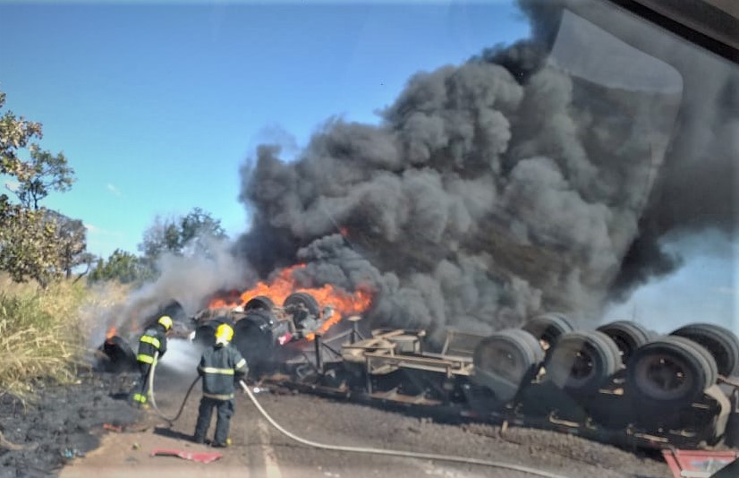 O acidente aconteceu por causa de um possível curto circuito, incendiando a cabine do caminhão, se espalhando para o veículo todo. Ao chegar ao local, cerca de 66 km da sede da Companhia, os bombeiros militares encontraram o “cavalinho” da carreta praticamente consumido pelo fogo, que foi combatido por completo e um rescaldo garantiu a extinção sem que as chamas se espalhassem para o reboque. Não houve vítima.