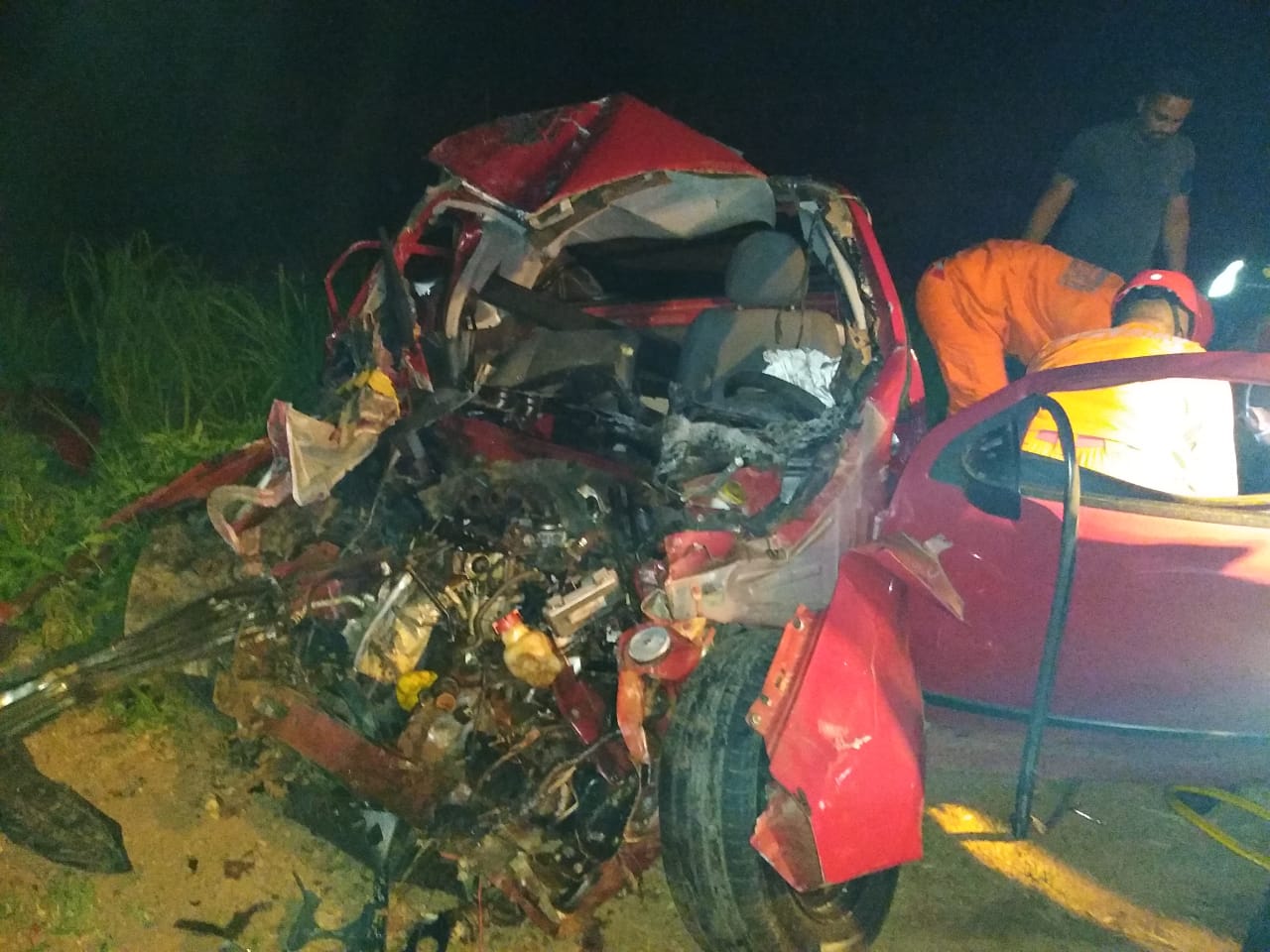 Os bombeiros militares do 3° Batalhão, em Gurupi, foram acionados a 1h11. Igor Cândido César, estava preso às ferragens da pick up Montana, já fora da rodovia, como resultado da colisão com um caminhão baú.