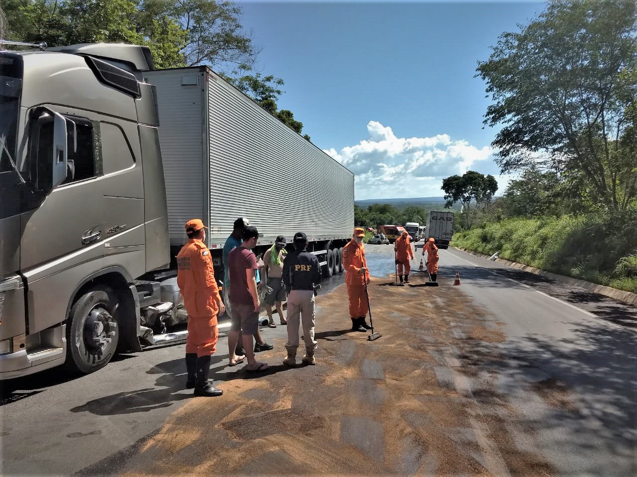 BR-153: bombeiros militares contém vazamento de óleo na pista após colisão