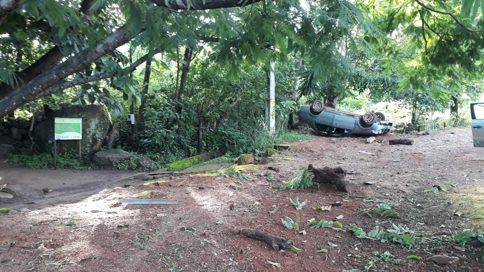 Carro capota em frente a entrada de cachoeira no distrito de Taquaruçu
