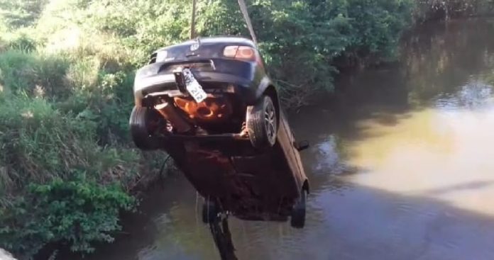 Um carro que tinha sido roubado foi encontrado submerso no Córrego Água Fria, às margens da BR-153 em Guaraí. De acordo com a Polícia Rodoviária Federal (PRF), policiais foram ao local para retirar o veículo após receberam uma denúncia.