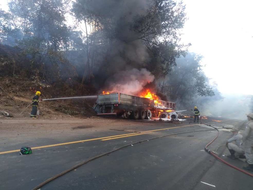 Após o atropelamento, o caminhão bateu na encosta da serra e pegou fogo. As chamas também atingiram a vegetação nas margens da rodovia, mas foram controladas pelos brigadistas florestais. Os bombeiros informaram que o motorista não foi encontrado no local.