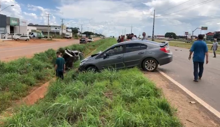 Dois carros vão parar no canteiro após colisão em trecho da BR-010, em Palmas