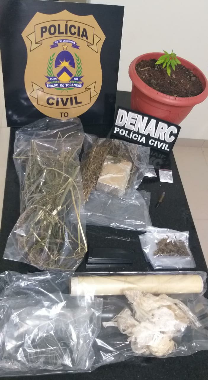 Diante dos fatos, os policiais civis adentraram ao local e após buscas minuciosas localizaram e apreenderam pés de maconha, várias porções de maconha prensada, papelotes de cocaína, certa quantia em dinheiro, além de insumos para embalar as substâncias entorpecentes, munições e aparelhos celulares que estavam em poder de um homem de 19 anos que foi preso em flagrante.