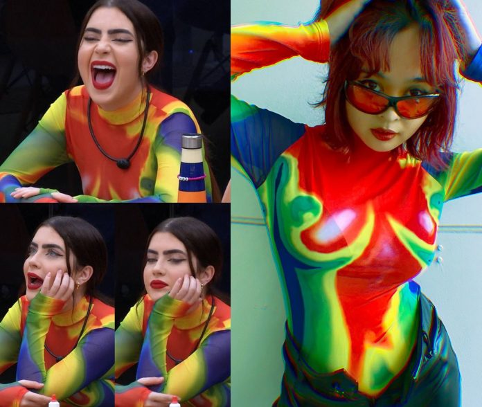 As tonalidades do body usado por Jade refletem bastante os projetos de Pamela, que se diz apaixonada pela “moda exagerada”.