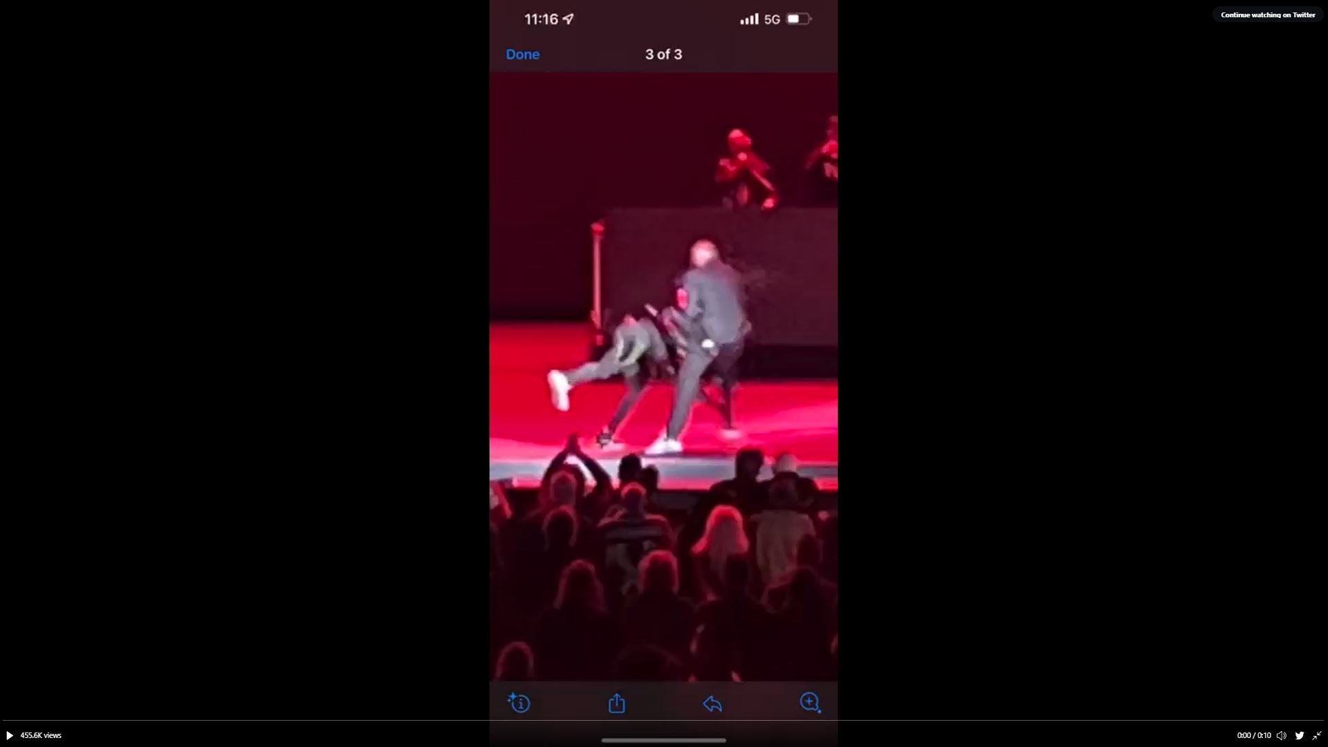Chappelle voltou ao palco depois de uma pequena pausa e continuou com a apresentação, fazendo piadas improvisadas sobre o incidente. Ele não parecia estar ferido.
