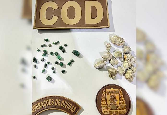 A Polícia Militar apreendeu 105 quilates de esmeralda e 163 gramas de piritas. Segundo a PM, a apreensão causou um prejuízo estimado de R$ 25 mil à atividade ilegal.