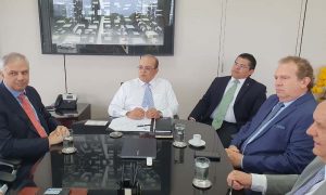 Acompanharam o governador Mauro Carlesse durante a reunião, o secretário de Estado da Indústria, Comércio e Serviços e presidente da Agência do Desenvolvimento do Turismo, Cultura e Economia Criativa (Adetuc), Tom Lyra; o secretário de Estado de Parcerias Público-Privadas, Claudinei Quaresemin; e o secretário de Estado da Fazenda e Planejamento, Sandro Henrique Armando.