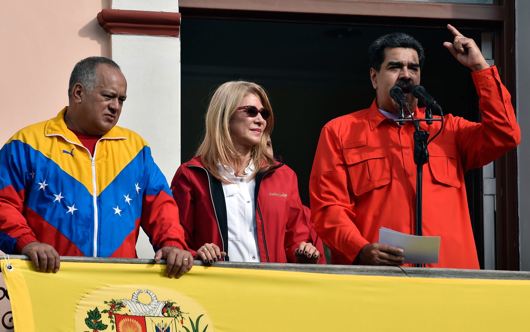 Fundado há 78 anos, sede do ‘El Nacional’ é confiscada em decisão judicial classificada pela Sociedade Interamericana de Imprensa (SIP) como a consumação de um roubo. O presidente da Venezuela, Nicolás Maduro, fala da sacada do Palácio Miraflores, na capital Caracas, ao lado de sua mulher, Cilia Flores, e de Diosdado Cabello, nº 2 do regime, em 2019
