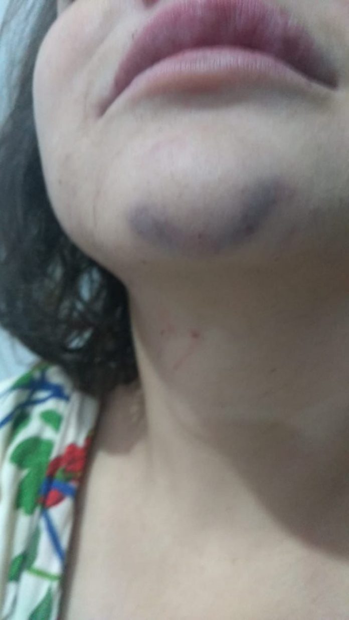 Mulher ficou com hematomas no rosto e pescoço após as agressões