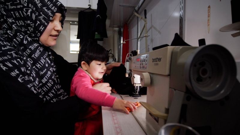 Nos últimos 2 anos, BBC investigou paradeiro de dezenas de crianças na província de Xinjiang, cujos pais dizem que foram enviadas para internatos do governo na China. Kalbinur, fotografada com seu filho Merziye, costura roupas para sustentar sua família