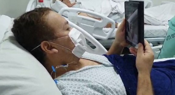 Ao conversar com a mãe pela primeira vez, através de uma vídeo chamada, o paciente falou dos momentos tensos durante a terapia intensiva e elogiou o trabalho dos profissionais de saúde.