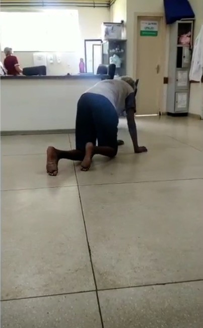 Idoso se arrasta no chão de UPA para conseguir ir ao banheiro