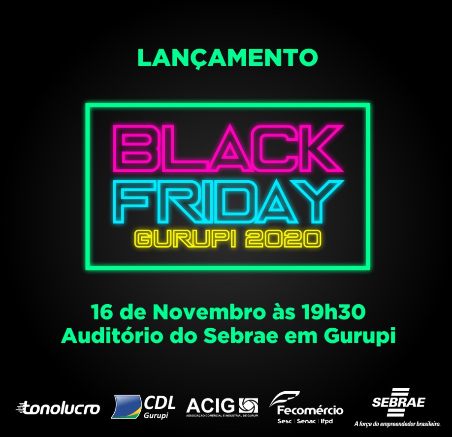 A campanha Black Friday Gurupi 2020 acontecerá de 23 a 28 de novembro com a participação de mais de 100 estabelecimentos comerciais. O evento será realizado pelo Sebrae Tocantins em parceria com a Fecomércio, a Câmara de Dirigentes Lojistas de Gurupi (CDL), o Tonolucro e a Associação Comercial e Industrial de Gurupi (ACIG).