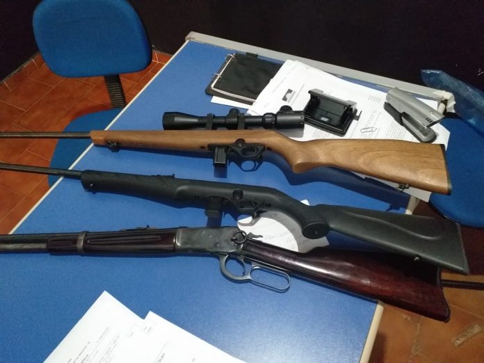De imediato, os agentes foram até a residência do homem, que fica situada no Assentamento Caracol, na zona rural de Formoso. Após localizar o suspeito, os agentes o questionaram sobre a denúncia de que ele mantinha armas em casa. De pronto, o indivíduo informou que no último sábado dia 30/01 teria recebido em pagamento de parte de uma conta três armas de fogo, sendo 02 rifles, calibre 22 e 01 carabina, de calibre 38.