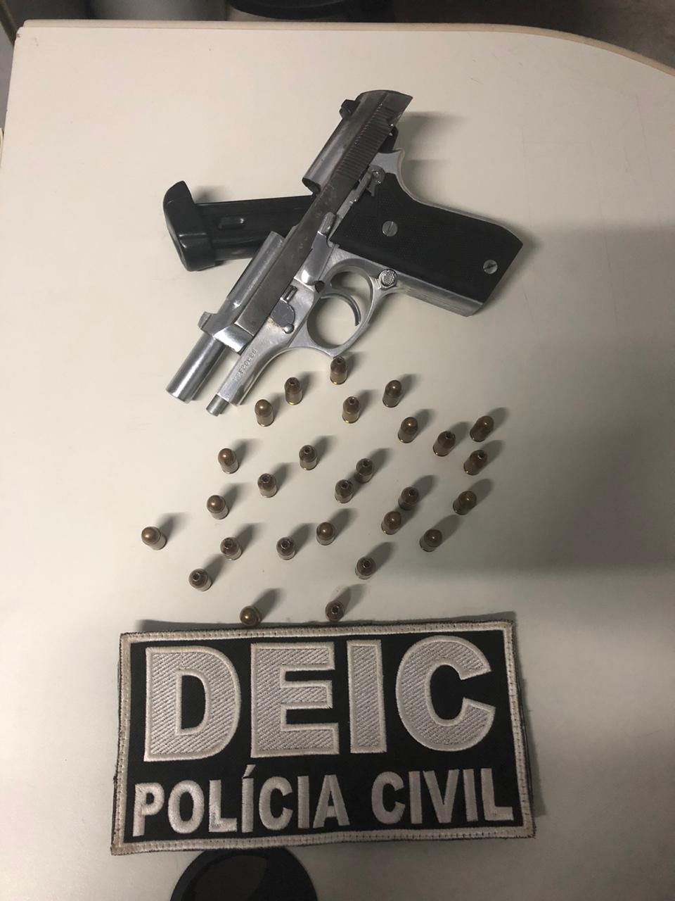 Durante o cumprimento do mandado, a equipe da 6ª DEIC, comandada pelo delegado Hismael Tranqueira, encontrou uma pistola calibre 380 e diversas munições do mesmo calibre. Com a apreensão da arma, o homem acabou sendo autuado em flagrante pelo crime de posse ilegal de arma de fogo e foi preso.