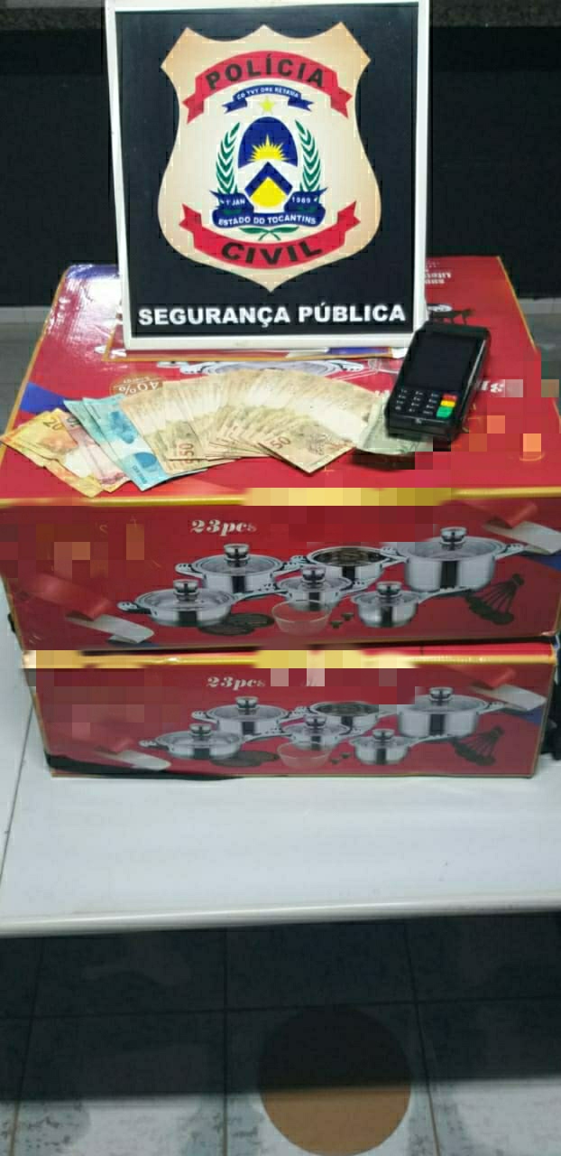 Após a abordagem, o casal suspeito e todo o material que portavam, sendo jogos de panelas, além de máquina de cartão de crédito e quantia de R$ 1.252,00 (Mil Duzentos e Cinquenta e Dois Reais), em espécie, foram apresentados na Central de Flagrantes de Araguaína para os procedimentos legais cabíveis.