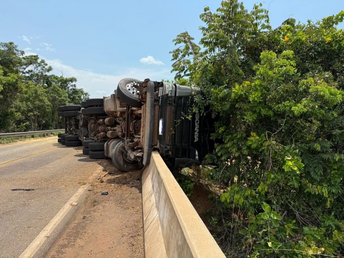 Caminhão tombou sobre ponte na TO-455, em Luzimangues