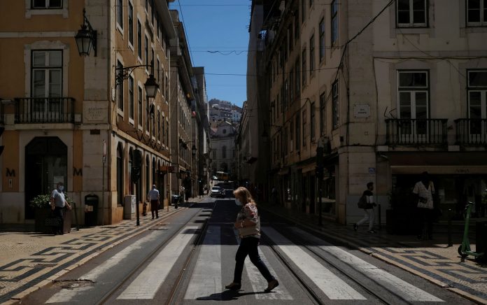 Toque será das 23h às 5h, começa na sexta-feira, e irá vigorar em 45 municípios de todo o país. ‘Não estamos nas circunstâncias de alegar que a pandemia está sob controle’, diz ministra de Gabinete; novos casos estão sendo relatados principalmente entre jovens não vacinados. Mulher usando máscara é vista em rua de Lisboa, Portugal, em foto de 24 de junho