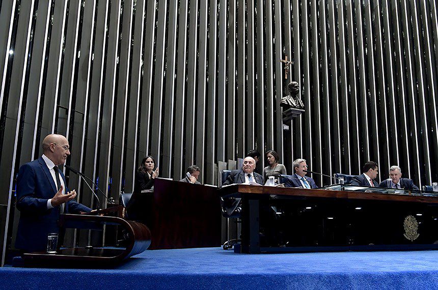 Ministro da Saúde no governo do presidente Fernando Henrique Cardoso, o senador José Serra (PSDB-SP) se dirigiu ao atual ministro da saúde, Luiz Henrique Mandetta, que acompanhou a votação e Plenário:
