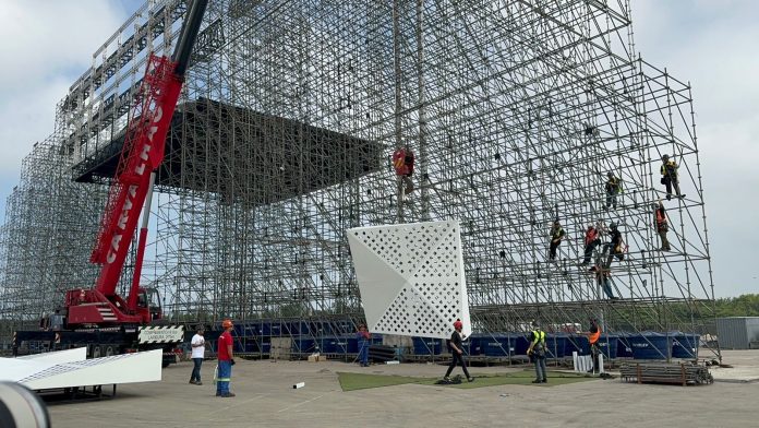 O palco para a edição dos 40 anos do Rock in Rio já começou a ser montado. O Palco Mundo terá 30 metros de altura e novos telões de LED. Outra novidade será no Palco Sunset, que vai ser construído com as mesmas dimensões que o principal. O objetivo é que o público não perca nenhum detalhe dos shows.