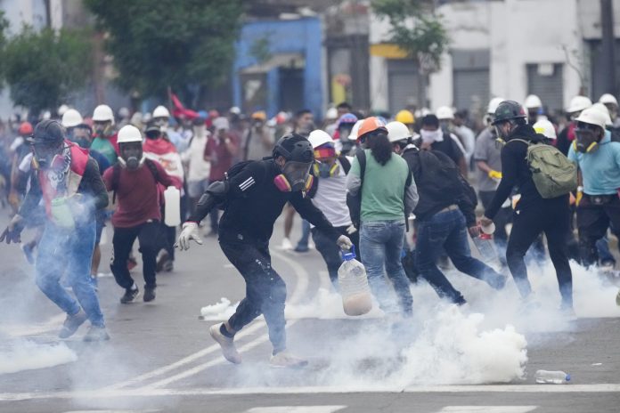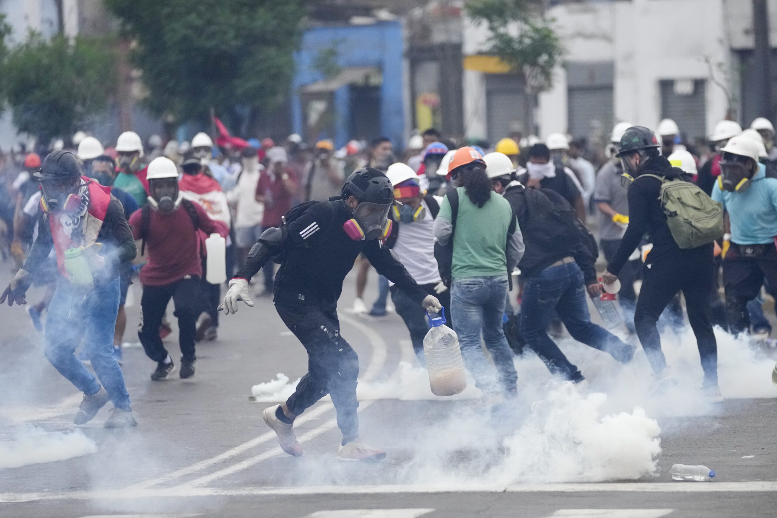 “O Peru não está mais interessado no que o Congresso faz. O Congresso não é necessário para o povo peruano. Vamos continuar na marcha, a polícia tem que se cansar, a gente vê a deterioração deles, a gente vai entrar lá. Toda vez que os distritos de Lima estão sendo incorporados”, disse Juan Cruz, um manifestante usando um capacete laranja.