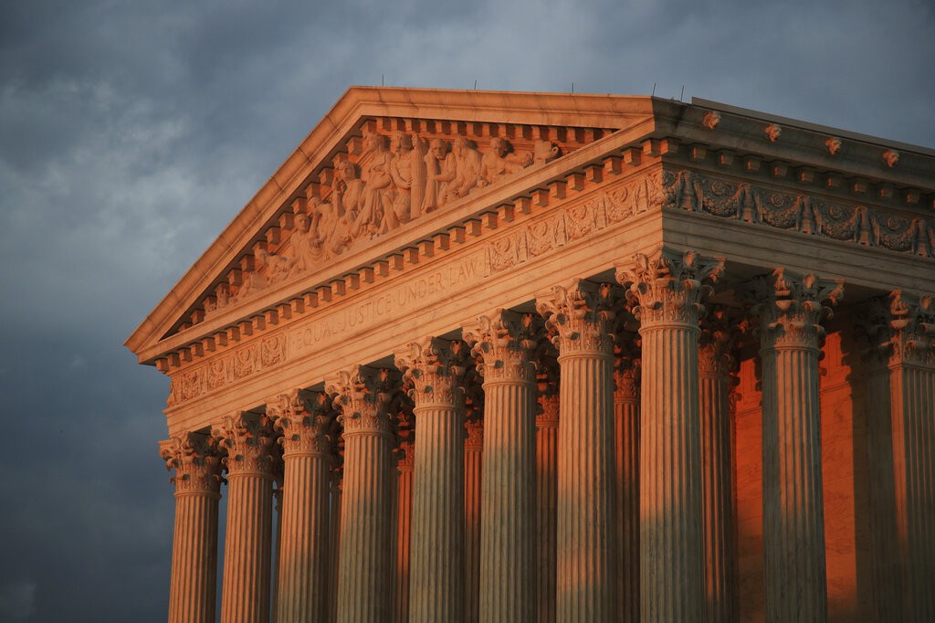 Maioria ratificou leis do Arizona que restringem o acesso ao voto, em uma derrota para o Partido Democrata de Joe Biden. Uma dessas leis considera crime que terceiros recolham e depositem as cédulas eleitorais dos votantes. Fachada da Suprema Corte dos EUA, em foto de 2018