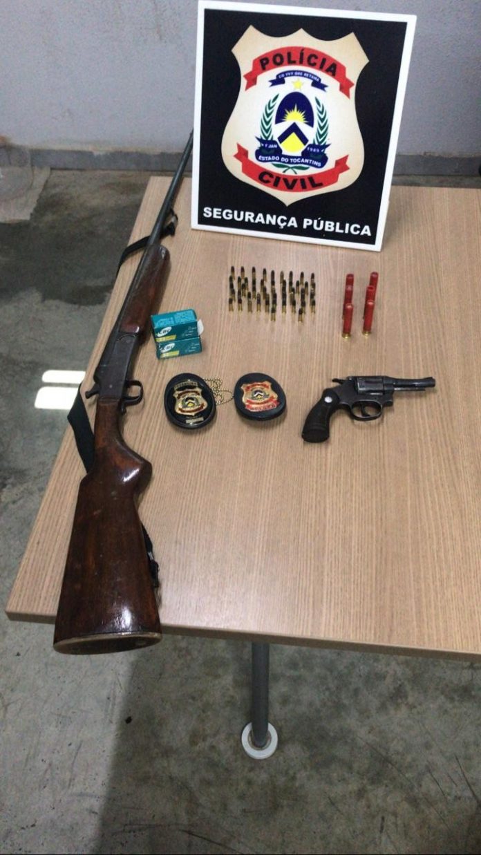 Nesta quarta os policiais fizeram revista na casa do suspeito. No local foram apreendidas duas armas, sendo uma espingarda calibre 36 e um revólver calibre 22, além de seis munições calibre 36 e 51 munições de calibre 22.