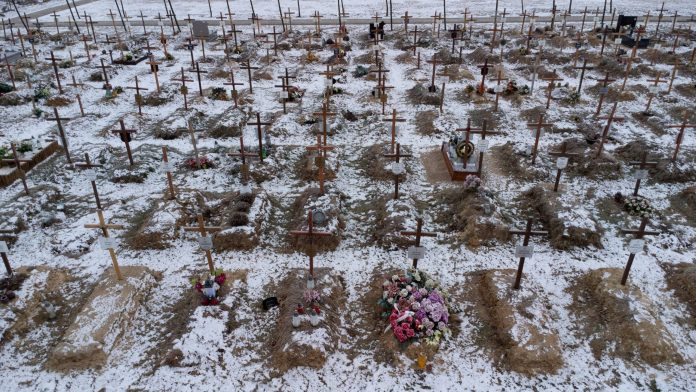 Novas sepulturas abertas em cemitério em Antoninow, na Polônia, em 11 de janeiro de 2022, em meio à pandemia do novo coronavírus (Covid-19)