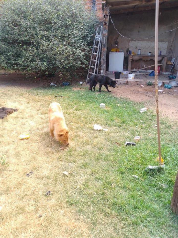 Conforme a PM, a morte de um dos cães já teria acontecido há alguns dias, já que o corpo estava em decomposição. Não havia ninguém como responsável pelos cães e a casa parecia estar vazia. Os animais estavam no quintal.