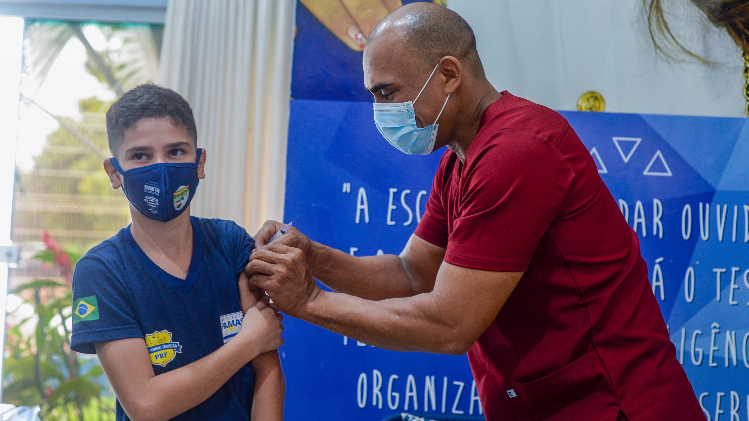 Na próxima semana o Busão deve continuar fazendo a imunização pediátrica nas escolas da rede municipal. Criança é vacinada contra a Covid-19 em escola de Palmas