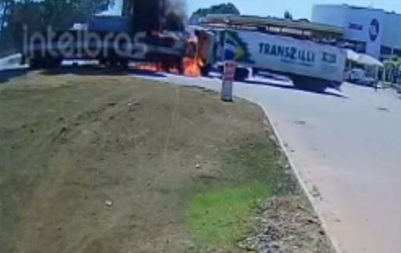 As chamas começaram no momento da batida. Primeiro o fogo atingiu o tanque e depois se espalhou para a parte a cabine. No vídeo é possível ver que o fogo tomou o veículo que provocou a colisão. O motorista de um dos veículos não conseguiu sair a tempo e morreu. Ele ainda não foi identificado.